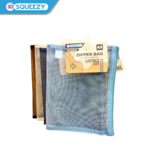 ZB-SQ3503 adalah zipper bag ukuran A6 dari merk SQUEEZY, hadir dengan desain vintage elegan dan bahan jaring nilon transparan yang ringan namun kuat. Ukurannya yang ringkas ±21 x 12 cm cocok digunakan untuk menyimpan uang, kartu, kertas kecil, flashdisk, kabel, atau alat tulis mini.