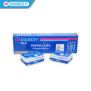 Paper fastener atau penjepit kertas adalah alat yang digunakan untuk mengikat beberapa lembar kertas menjadi satu dengan rapi dan aman. Merek Squeezy dikenal memproduksi berbagai perlengkapan alat tulis dan kantor, termasuk paper fastener.