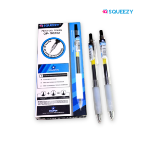 Pena Gel Squeezy Office Smooth 0.5mm dengan tinta hitam adalah pena berkualitas tinggi yang dirancang untuk kebutuhan kantor, akademik, dan profesional. Dengan ujung pena 0.5mm, pena ini menghasilkan garis tulisan yang rapi dan jelas. Tinta gel hitamnya memiliki warna yang gelap dan cepat kering, cocok untuk koreksi dokumen, tanda tangan, atau keperluan administrasi lainnya.