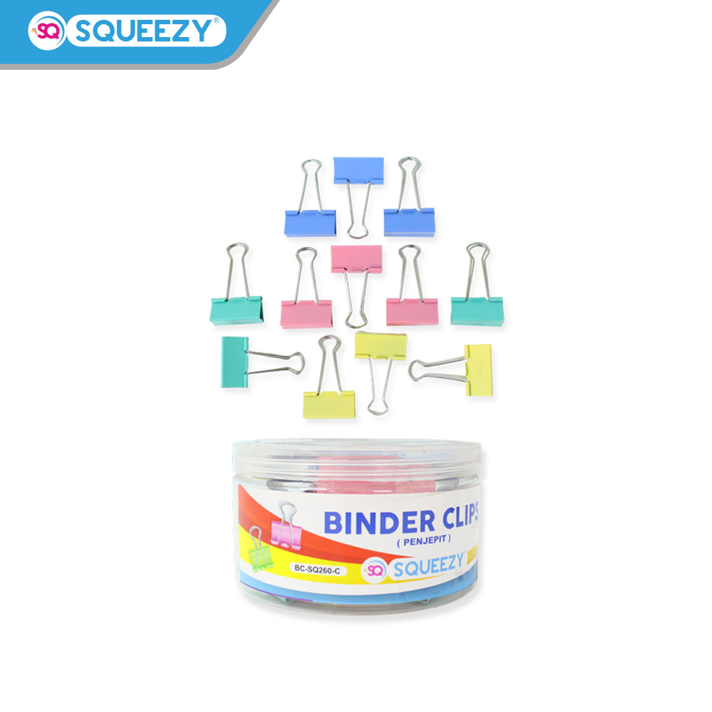 Binder Clips Squeezy adalah variasi binder clips yang dirancang dengan pegangan atau penjepit yang lebih besar dan ergonomis, sehingga lebih mudah untuk dibuka dan ditutup. Desain ini membuatnya lebih nyaman digunakan, terutama ketika memegang dan mengatur sejumlah besar kertas. Squeezy binder clips sering kali juga memiliki pegangan yang lebih lebar dan lentur, sehingga memberikan tekanan yang lebih merata saat menjepit kertas. Ini membuatnya menjadi pilihan yang baik untuk penggunaan sehari-hari di kantor atau di rumah, di mana kenyamanan dan kepraktisan sangat dihargai.