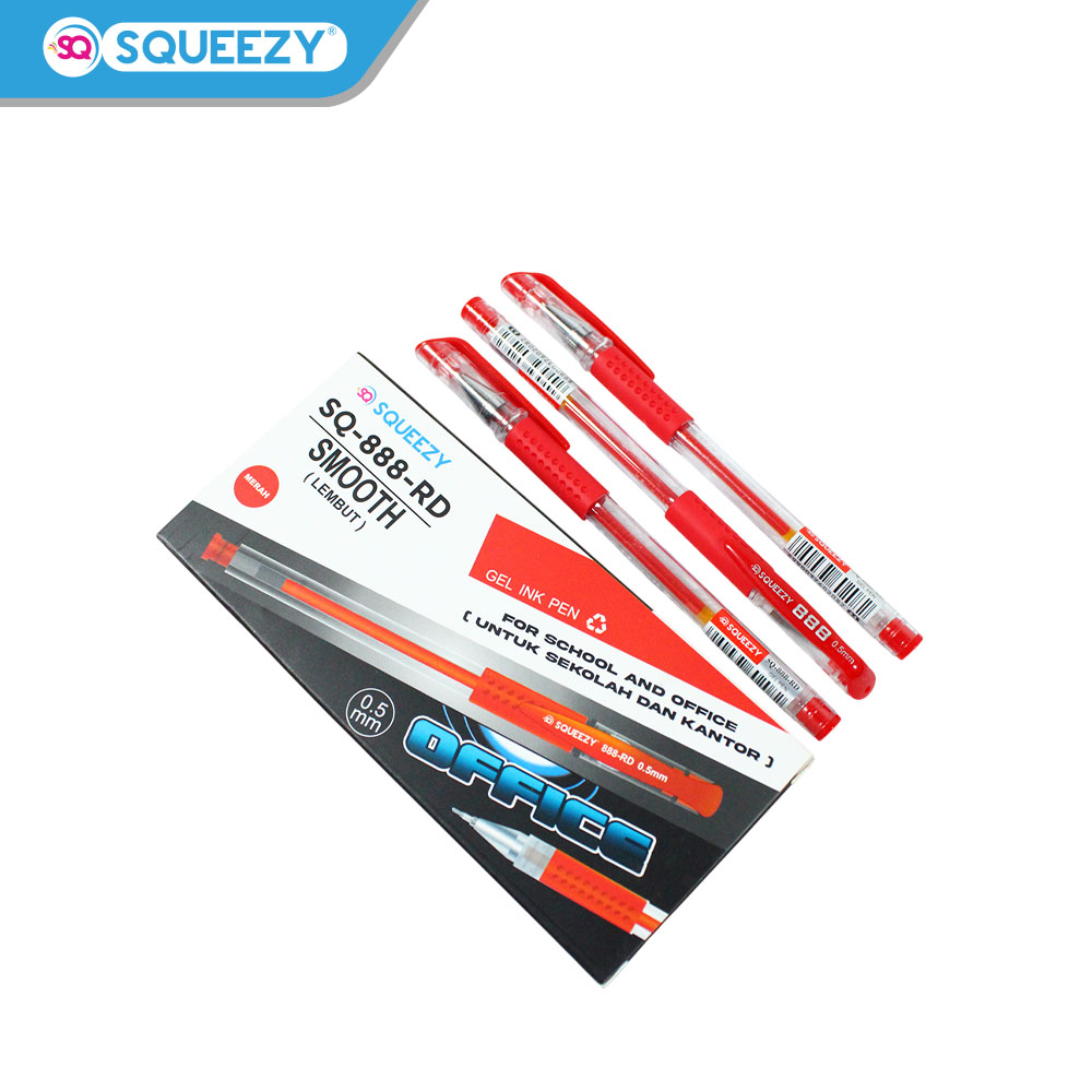 PENA GEL SQ OFFICE SMOOTH 0.5mm – MERAH ( GP-SQ888-RD )