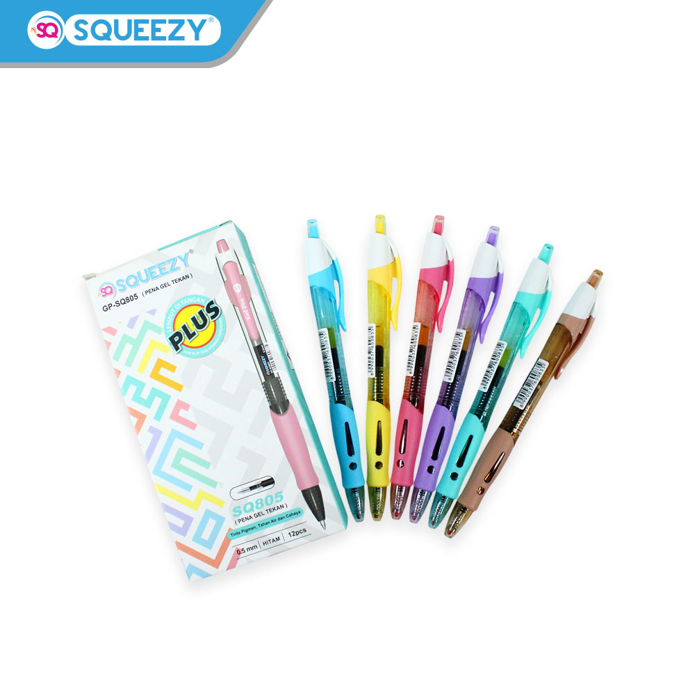 Pena Gel Squeezy adalah jenis pena gel yang memiliki tabung atau badan pen lebih besar dan dirancang untuk memberikan kenyamanan ekstra saat digunakan. Desain “squeezy” pada pena ini mengacu pada pegangan yang lebih besar dan ergonomis, yang memungkinkan pengguna untuk memegangnya dengan lebih nyaman dan stabil saat menulis. Selain itu, pena gel ini sering kali memiliki mekanisme penyemprotan tinta yang lebih lancar dan konsisten, serta ujung yang halus untuk memberikan pengalaman menulis yang mulus dan akurat. Pena Gel Squeezy cocok digunakan untuk tulisan sehari-hari di kantor, sekolah, atau di rumah, memberikan kombinasi antara kinerja yang baik dan kenyamanan dalam penggunaan.