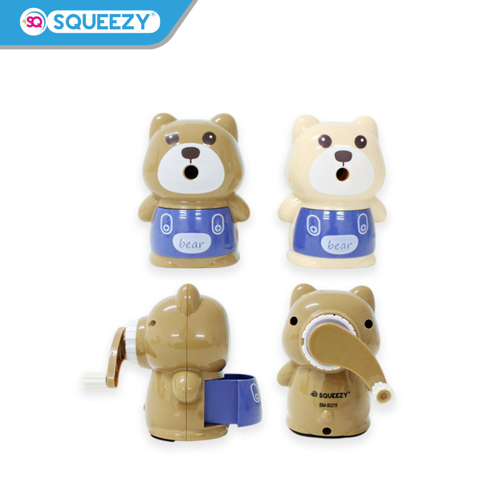 Serutan meja “Squeezy” mungkin mengacu pada penghapus serutan atau pencacah pensil yang didesain untuk digunakan dengan mudah di atas meja atau permukaan kerja. Penghapus serutan ini umumnya memiliki pegangan yang ergonomis dan nyaman digunakan, serta bagian yang menampung serutan pensil yang mudah untuk dibersihkan.